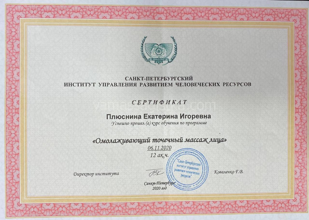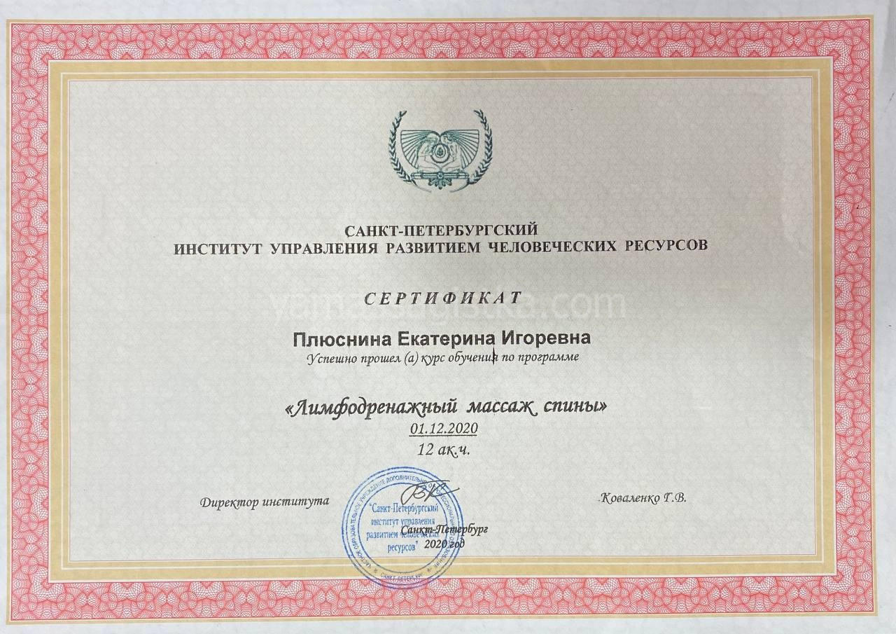 Меня зовут Екатерина и я профессиональный массажист, телесно-ориентированный практик. Имею медицинское образование, сертификат специалиста государственного образца, опыт работы более 5 лет.